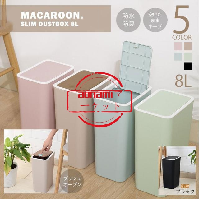 8 スリム ワンプッシュ開閉 全5色 ふた付き バスルーム シンプル ダストボックス 防水 キッチン 防臭 ごみ箱 ゴミ箱 送料無料 一人暮らし
