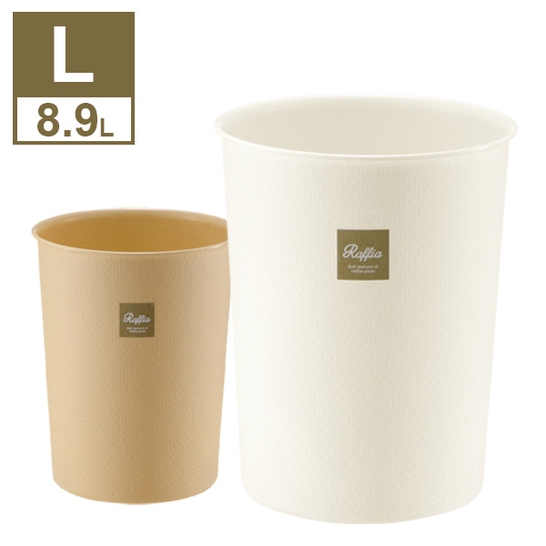 ■リッチェル ごみ箱 ラフィアカン L 8.9L ホワイト / ベージュ | ダストボックス くずかご 収納かご ナチュラル フタなし ゴミ入れ 丸型