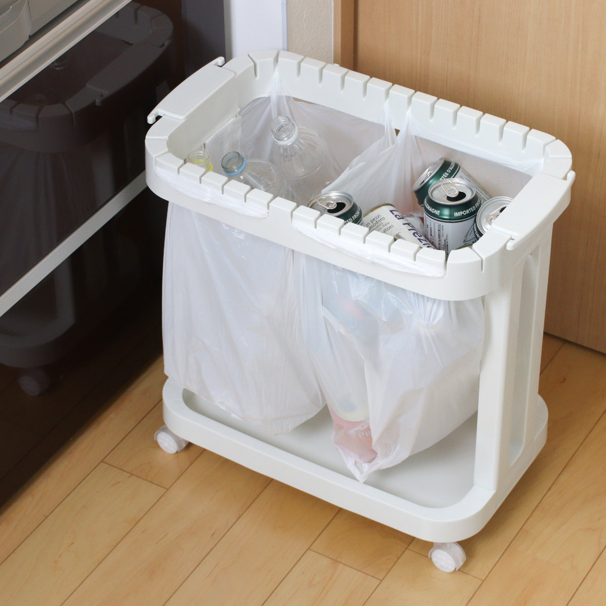 ■ゴミ箱 分別 レジ袋ホルダー キャスター付き ( ゴミ袋ホルダー ごみ箱 レジ袋 分別用ゴミ箱 コンパクト キャスター ゴミ箱 分別)