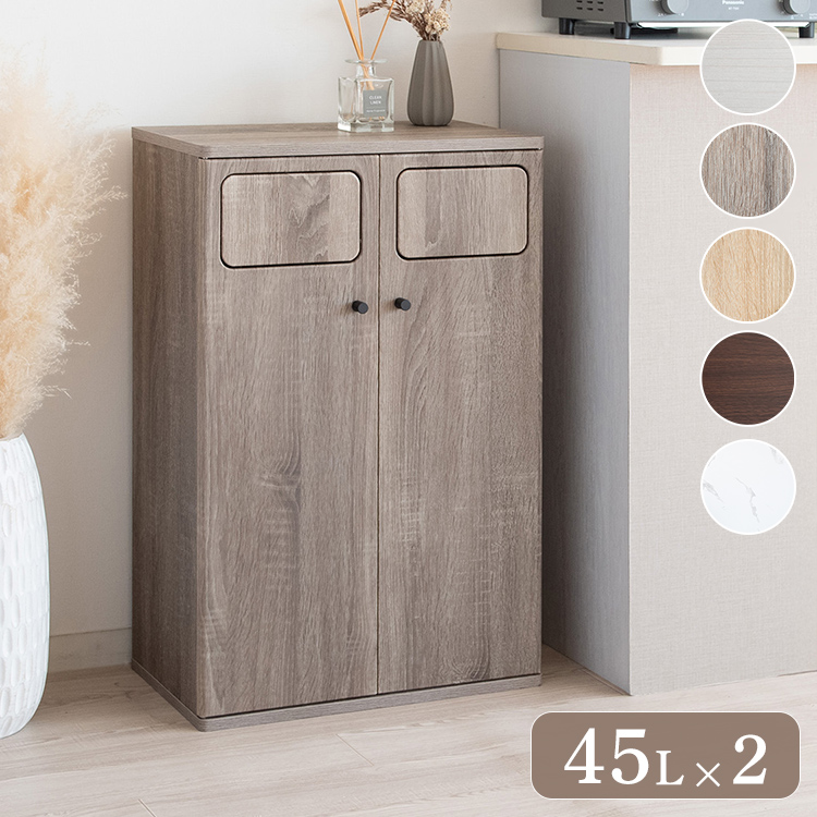 【特長】ゴミ箱に見えないスタイリッシュなデザインでお部屋に馴染む、木製プッシュ式ダストボックス『Empro(エンプロー)』の二連タイプ。キッチンなどでのゴミの分別が楽に行えます。ニオイが漏れにくく押すだけで簡単に捨てられるプッシュ扉式。それぞれ容量45Lでたっぷり入るので大家族のご家庭でも快適。ゴミ袋の着脱も簡単な前扉があり、利便性もバツグンです。【商品名】木製ダブルプッシュダストボックス Empro(エンプロー)【サイズ】幅50×奥行き30×高さ80cm【材質】合成樹脂化粧パーティクルボード(塩化ビニル)【その他】対応ポリ袋:45L天板耐荷重:約10kg組立式(約60分)