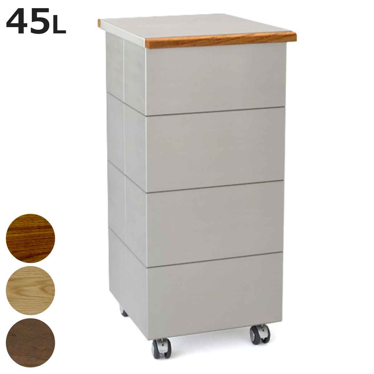 ■ダストボックス ダブルプッシュ式 Empro(エンプロー) 木目調 45L×2 ワンプッシュ キッチンペール ごみ箱 ふた付き 縦型 ごみばこ(代引不