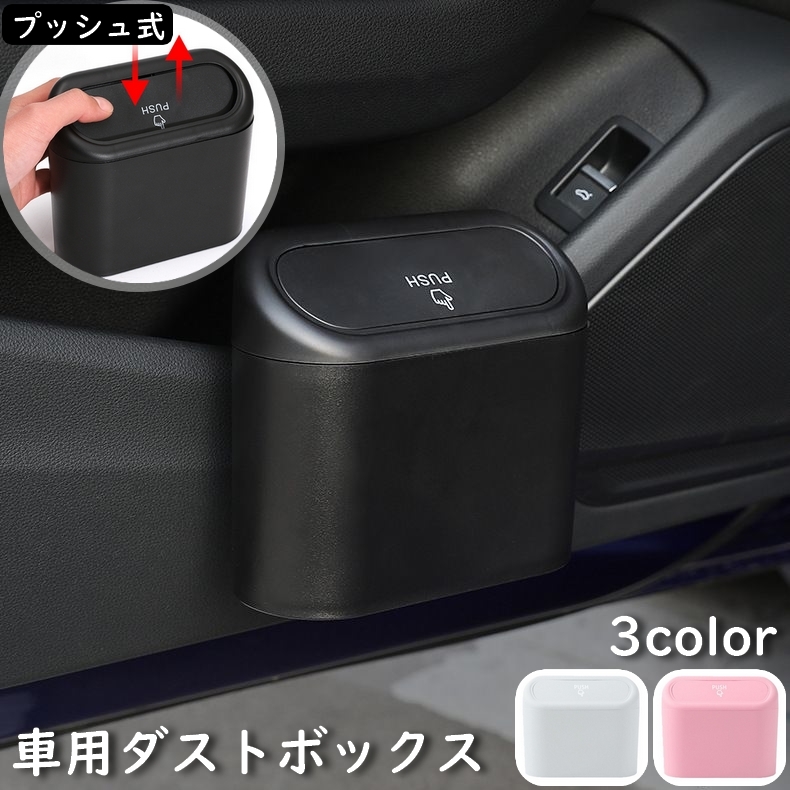 ■車用ゴミ箱 カー用品 車用品 ダストボックス 車載 ごみ箱 小物入れ 車内収納 蓋付き 引っ掛け プッシュ式 ブラック 黒 シン