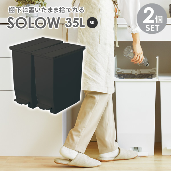 ■ゴミ箱 SOLOW ソロウ ペダルオープンツイン 35L ブラック 2個セット | ごみ箱 ダストボックス おしゃれ ペダル式 カップボード下 キャス