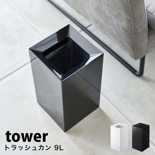 ■タワー ゴミ箱 おしゃれ 北欧 トラッシュカン tower ゴミ袋が見えない ゴミ箱 ごみ箱 ごみばこ ダストBOX 白 黒 ホワイト ブラック 山崎