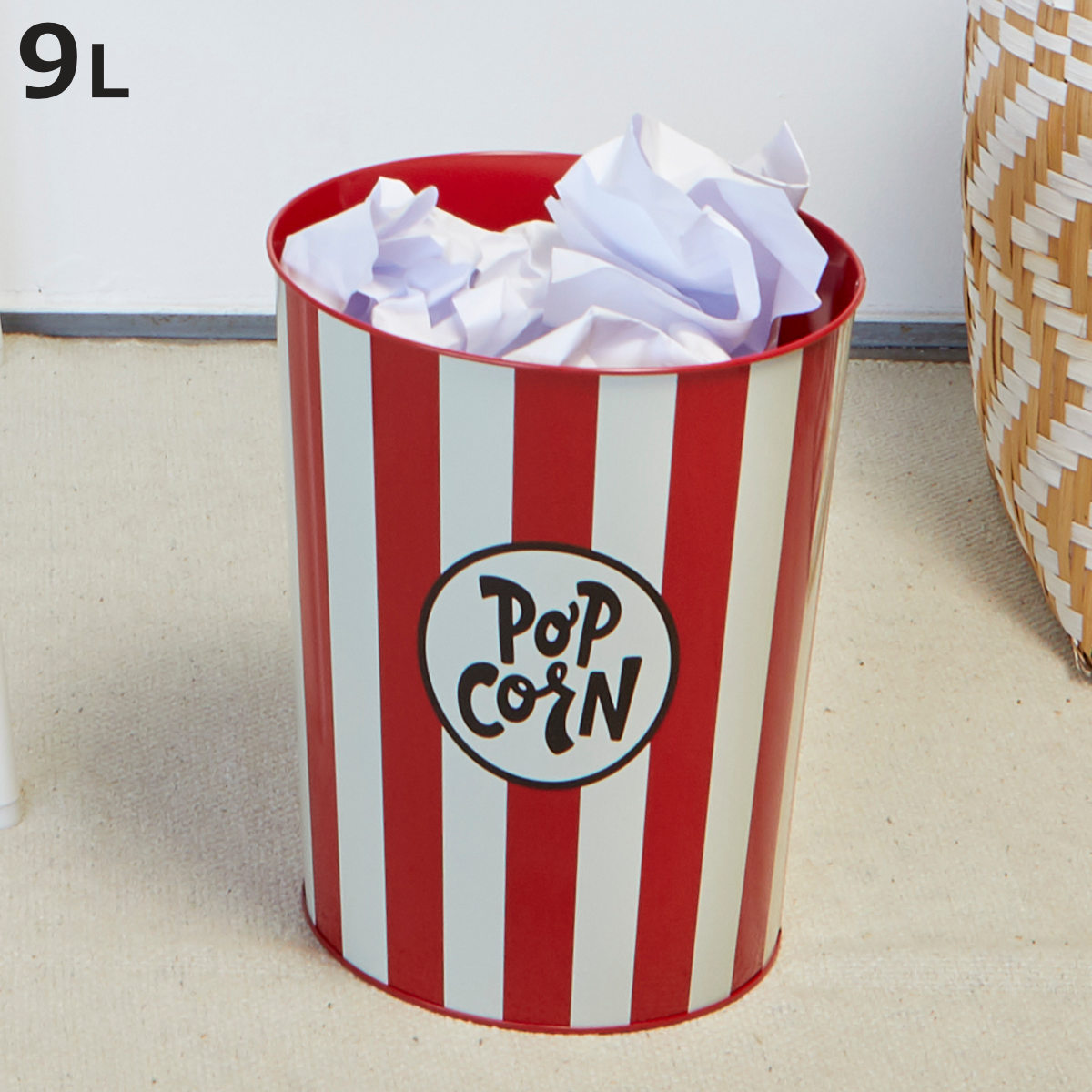 ■ゴミ箱 9L Balvi レトロ ポップコーン レッド ( ごみ箱 9リットル ユニーク くず入れ インテリア アメリカン 子供部屋用 ふた無しゴミ箱