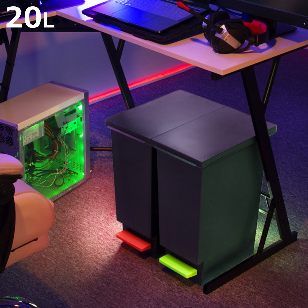 ■ゴミ箱 20L ゲーミングペール ペダル ( ごみ箱 20リットル ペダル式 ふた付き 角型 ブラック ゲーミング インテリア 分別 袋止め付き ゴ
