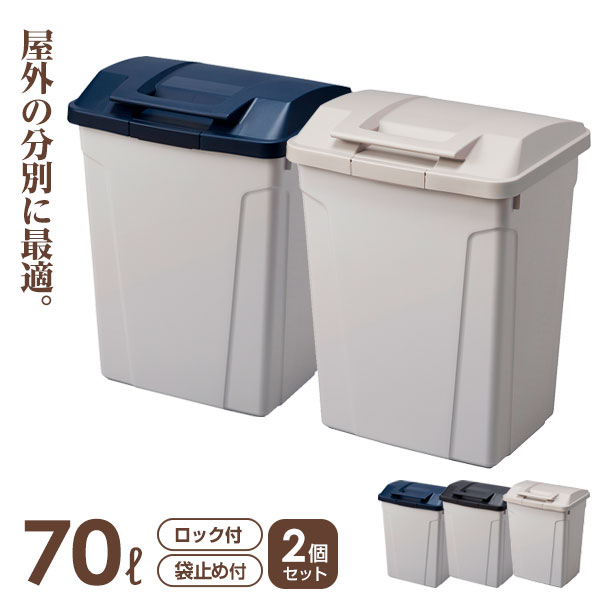 ■ゴミ箱 屋外 ハンドル付分別ペール 2個セット 70L ブルー / ブラック / グレー | キッチン ごみ箱 開けやすい 大型 大容量 おしゃれ キ