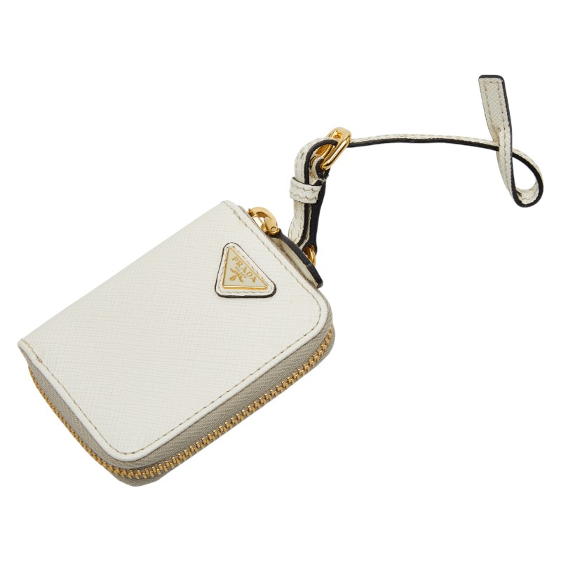 ■プラダ 三角ロゴプレート バッグチャーム コインケース 小物入れ 1TL085 ホワイト サフィアーノレザー レディース PRADA 【中古】
