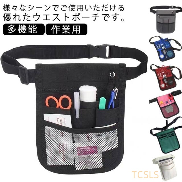 ウエストポーチ 仕事用 エプロンバッグ ナースポーチ 小物入れ ワンタッチ ベルト付き 小さめ 薄型 工具袋 保育師 多機能 介護士 看護師 美容師 アウトドア 送料無料