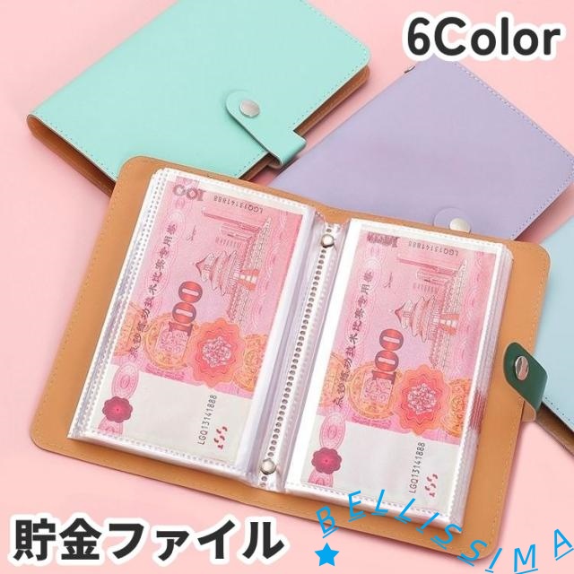 貯金ファイル お札入れ 手帳タイプ 50ページ 両面収納 クリアポケット スナップボタン 小物入れ 無地 シンプル 大容量 持ち
