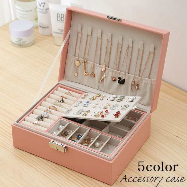 アクセサリーケース ジュエリーボックス 宝石箱 小物入れ 2段 カギ付き 大容量 収納 整理 保管 四角形 スクエア フック 仕