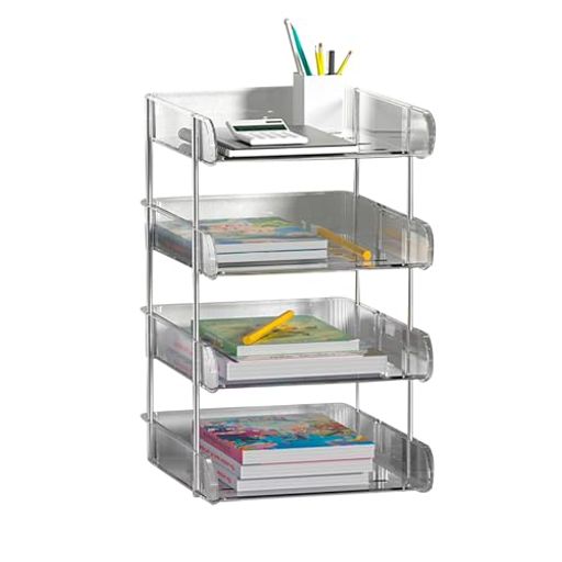 ■XXIAOTIAN(ゼクシオティアン) 書類トレー A4縦置き4段書類トレー 卓上収納ラック 透明な積み重ね可能 書類整理 小物入れ ペン立て 文房具