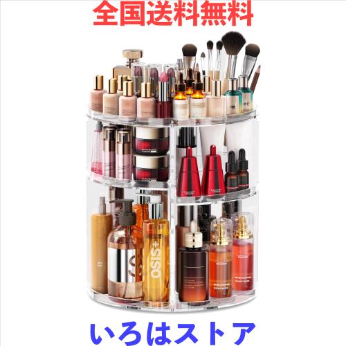 ■Auxmir メイクボックス コスメ収納 化粧品収納ボックス 360回転式 小物入れ 大容量 高さ調節可能 アクセサリーケース アクリル 仕切り お