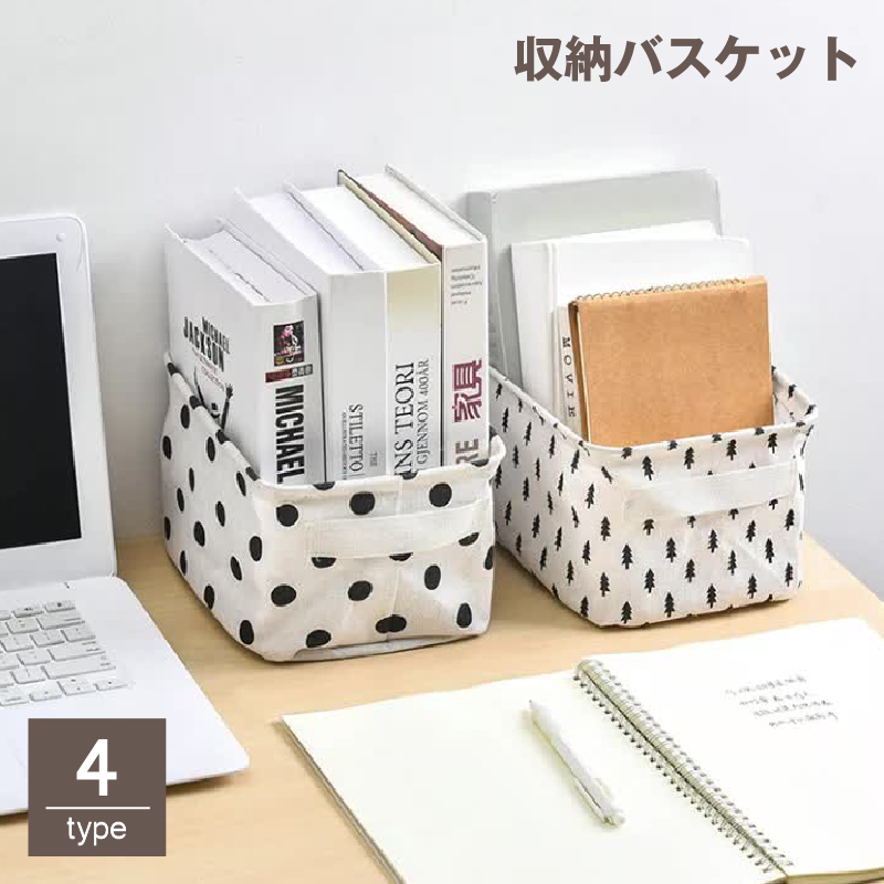 ■収納バスケット 布製カゴ 収納ボックス 小物入れ 持ち手付き 折りたたみ可能 布製 文房具 メイク道具 化粧品収納 リモコン 自