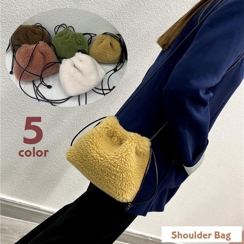 ■ショルダーバッグ 巾着袋風 レディース 女性 カバン 鞄 肩掛け 斜め掛け ふわふわ 起毛 ふんわり 小物入れ フェイクファー かわいい 小さ