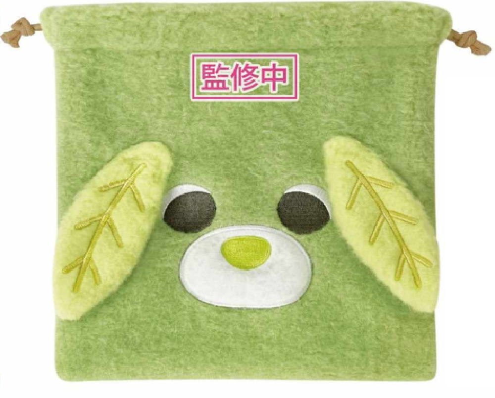【お茶犬】【ふわふわシリーズ】フェイス巾着【リョク】【動物】【アニマル】【ポーチ】【ケース】【小物入れ】【袋】【収納】【子供】【キッズ】【雑貨】【グッズ】【かわいい】