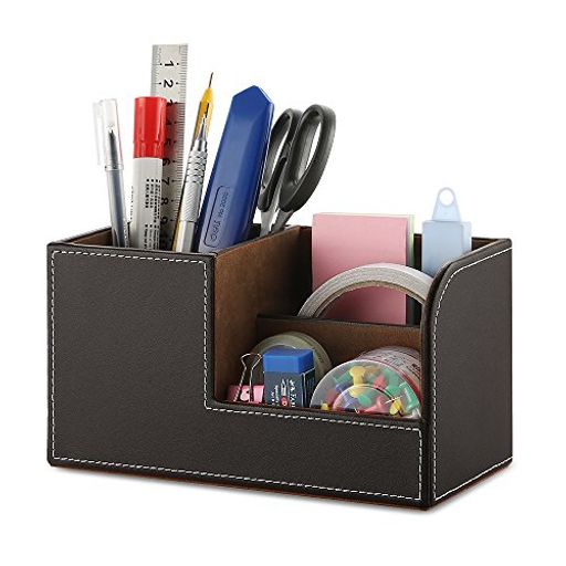 ■デスクオーガナイザー ペン立て 卓上収納 小物入れ リモコンスタンド 机上用 PUレザー (ブラウン)
