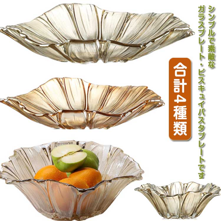 ■お皿 フルーツ皿 ガラス プレート透明 小物入れ パスタ皿 皿 ガラス 皿 おしゃれ ガラスプレート デコレーショントレイ トレイ アクセサ