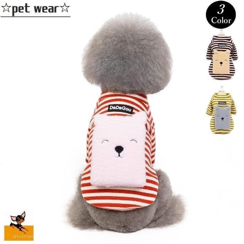 ペットウェア セーター ボーダー 防寒 フワフワ あったか スナップボタン クマ リュック 小物入れ 秋 冬 Da Da Gou お散歩 お出かけ 犬 猫