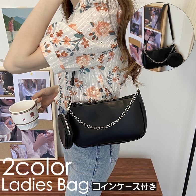ショルダーバッグ コインケース付き 斜め掛け 肩掛け レディース 女性 鞄 カバン チェーン 小銭入れ 小物入れ 取り外し可能 ファスナー 無地 シン