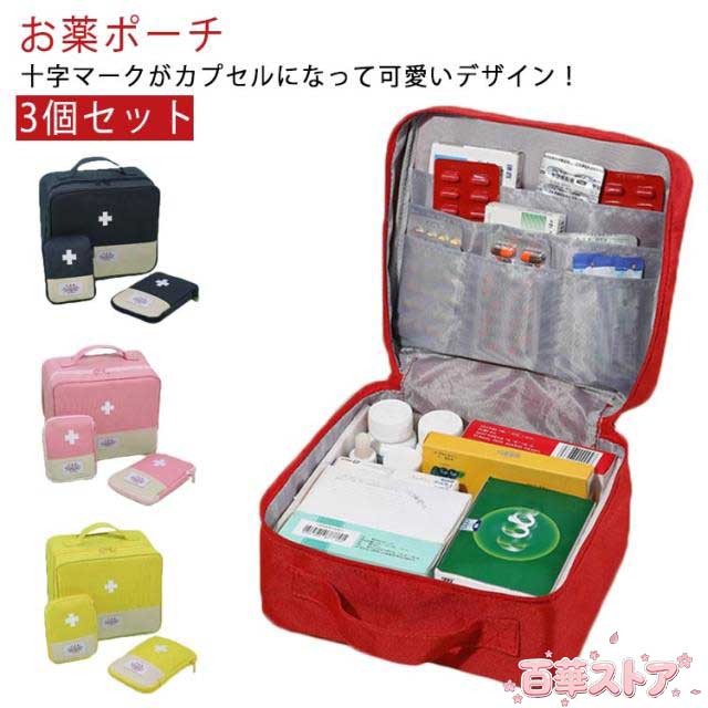メディカルポーチ 救急箱ポーチ 医療箱 薬箱 薬ポーチ 応急処理バッグ ファーストエイド ミニポーチ 小物入れ ボックス 学校 救急セット 救急パック 医薬品 手提げ 3点セット 大容量 ハンドル付き 防災 救急用 収納箱 安全対策 持ち出し用 家庭用 3点セット アウトドア