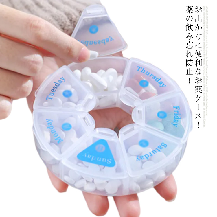 ■[2個セット] ピルケース 1週間分 薬入れ 薬ケース 薬箱 コンパクト 飲み忘れ 防止 薬 収納 薬収納 1日分 携帯便利 小物入れ 仕切り くす