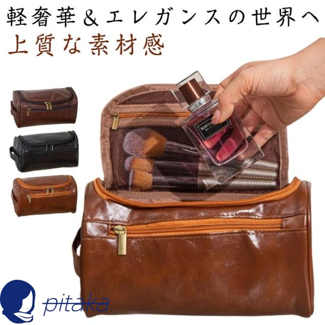 PU 防水 小物入れ 洗面用具 コンパクト 旅行 化粧ポーチ 化粧ポーチ ポーチ メンズ PUレザー 男女兼用 コスメポーチ 洗面バッグ メンズ ポーチ 収納ポーチ バスルームポーチ 仕切り 化粧品収納 洗面用具収納