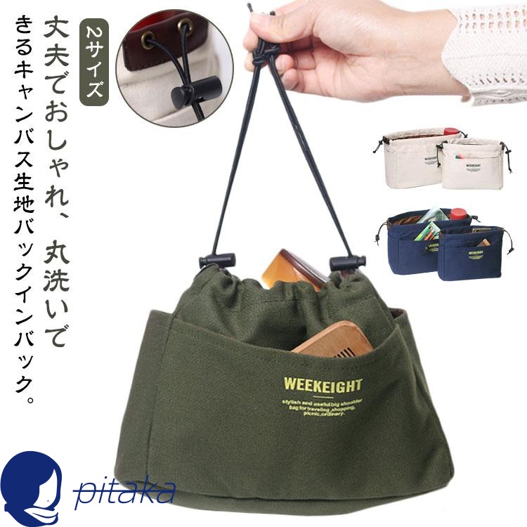 ■バッグインバッグ 大きめ 小さめ 2サイズ 仕切り ポケット キャンバス 洗える インナーバッグ 化粧ポーチ 収納ポーチ 小物入れ レディー