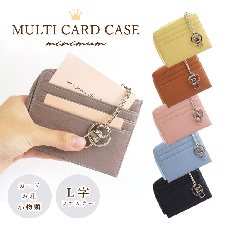 ■L字 カードケース マルチケース チェーン リング カラビナ ミニマムケース 軽量 スリム コンパクトケース 小物入れ お札入れ フック ミニ
