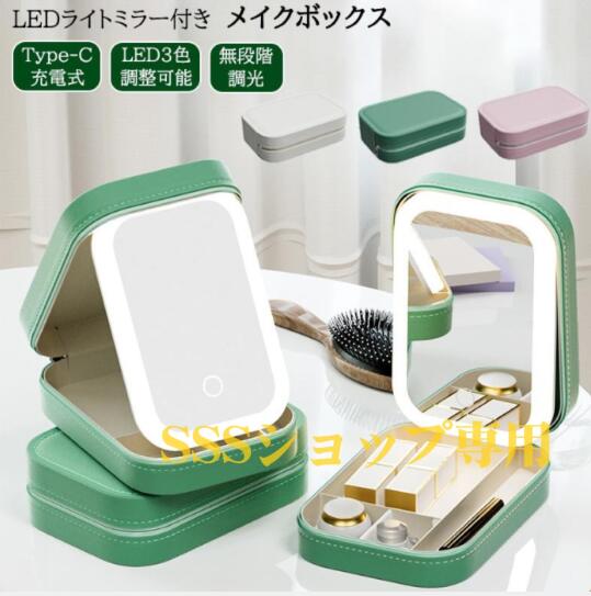 メイクボックス ライト付き 大容量 間仕切り 3色調光 鏡付き コスメケース 化粧ボックス 小物入れ アクセサリー ボックス ジュエリー LED