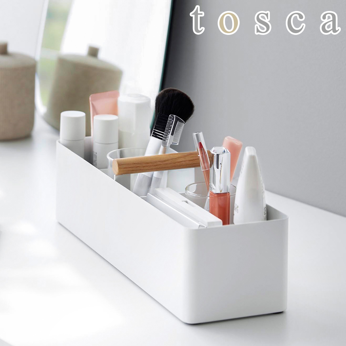 ■[ ハンドル付きスリム収納ボックス トスカ ]山崎実業 tosca 卓上収納 仕切りラック 小物入れ 小物収納 メイクボックス コスメ収納 化粧