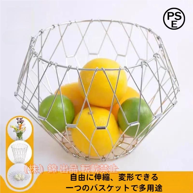■バスケット フルーツバスケット 変形 小物入れ お菓子入れ ステンレス製 お洒落 折りたたみ 株式会社錦 多機能 トレー 果物かご フルーツ