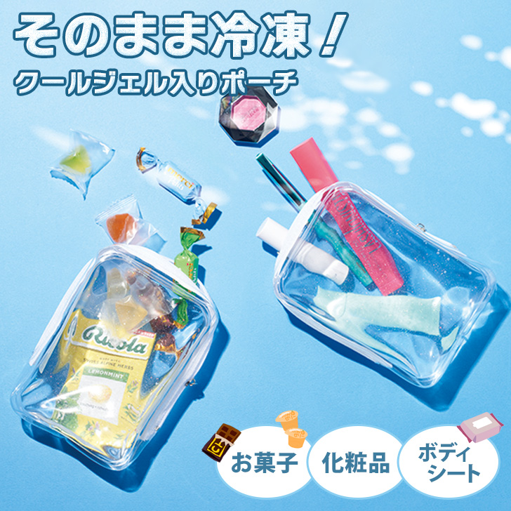 ■新作 そのまま冷凍!クールジェル入りミニクリアポーチ 保冷ポーチ 保冷ケース 保冷袋 保冷 保冷剤 アイス 小物入れ 持ち歩き 持ち運び
