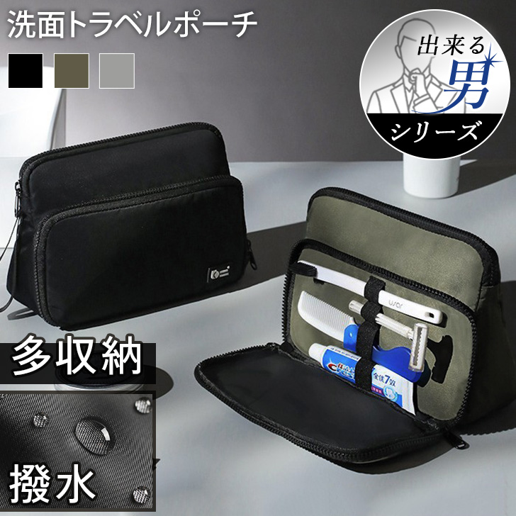 ■新作 撥水多収納フロントポケットメンズ洗面トラベルポーチ メンズ レディース ポーチ 小物入れ 自立 仕切り 収納 大容量 洗面 スキンケ