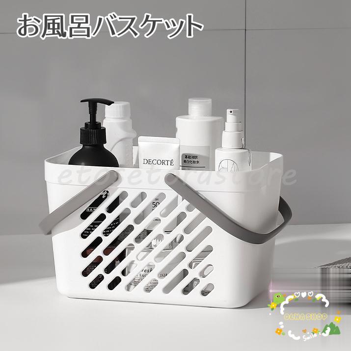 お風呂バスケット かご 手提げ 無地 白 小物収納 小物入れ 水切り 通気性 整理整頓 多用途 持ち手付き 持ち運び シンプル 便利 浴室 洗面所 温
