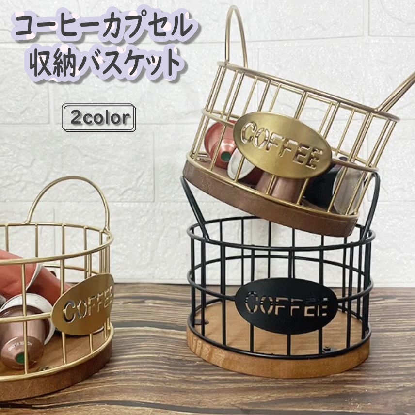 ■コーヒーカプセル収納バスケット かご コーヒー用品 お茶用品 アイアンラック キッチンラック キッチン収納 小物入れ 丸型 カゴ