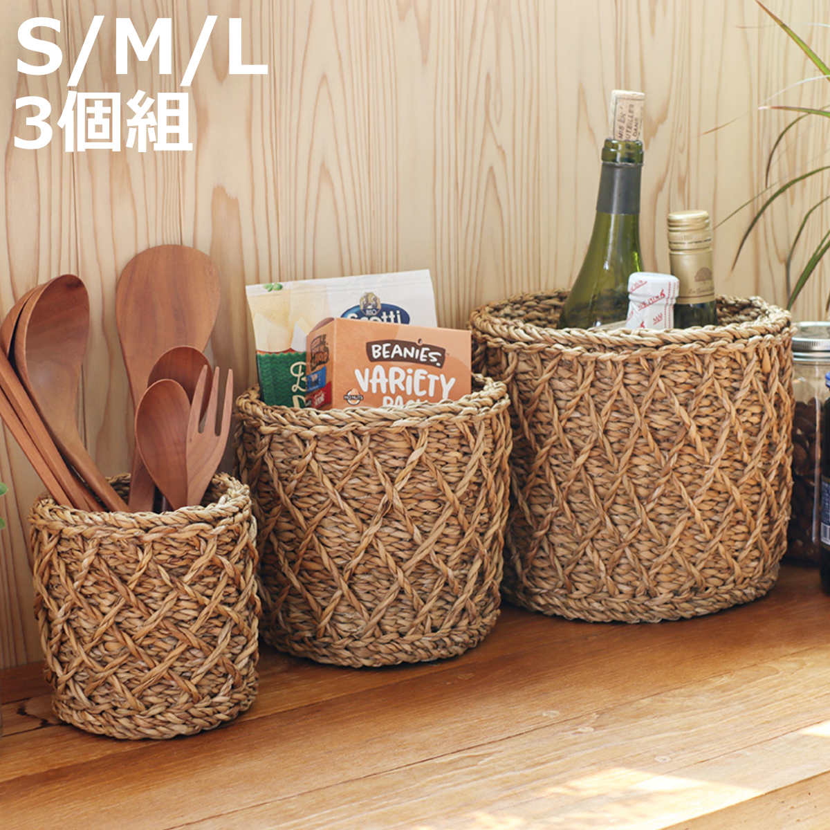 ■かご バスケット 3個組 ラティス 小物入れ S M L ( カゴ 収納 小物収納 ジュート シーグラス ハンドメイド 籠 小物ケース 収納バスケッ