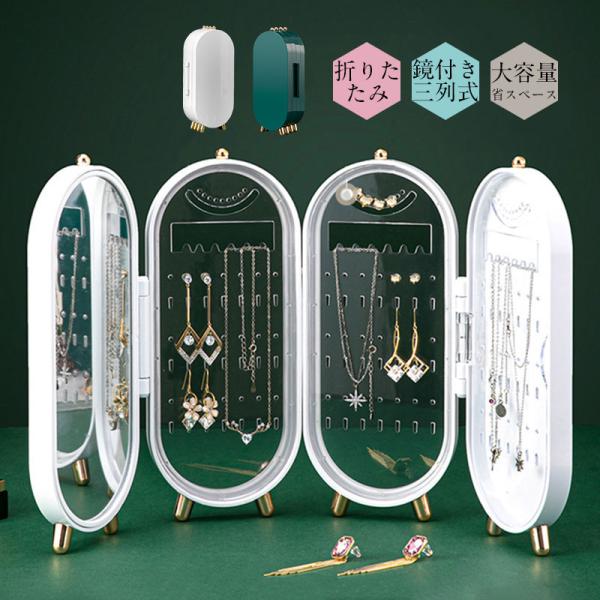 ■アクセサリーケース 折りたたみ 持ち運び 三列式 ジュエリーケース 鏡付き 大容量 アクセサリー 収納