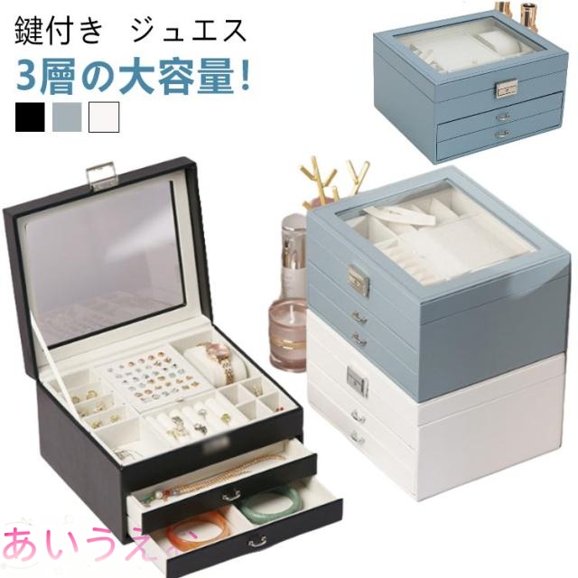 ■ジュエス 3段式 高級 大容量 鍵付き 天窓付き ジュエリーケース アクセサリー収納 宝石箱 子供 大人 アンティーク おしゃれ かわいい ア