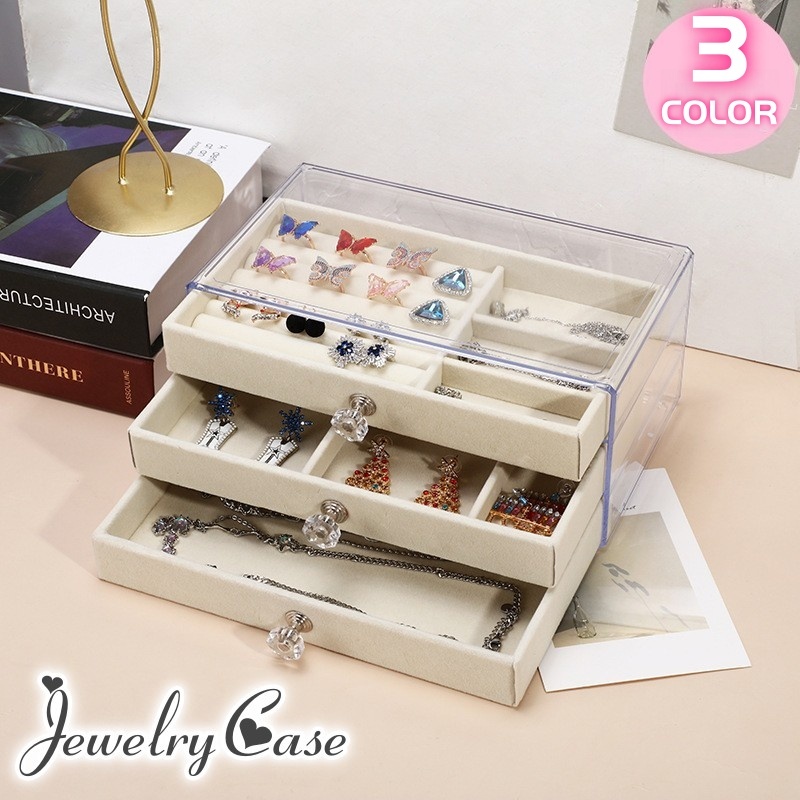 ■ジュエリーケース アクセサリーケース ジュエリーボックス 3段 アクセサリー 収納ケース 保管 クリア おしゃれ かわいい 上品
