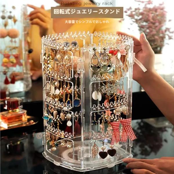 ■アクセサリースタンド ジュエリーケース ホルダー ラック ディスプレイ ピアス ブレスレット ネックレス 収納 整理整頓 大容量 回転式 ク