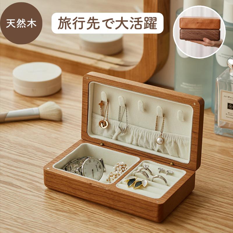 ■天然木 アクセサリーケース 旅行用 ジュエリーケース 携帯用アクセサリーボックス ジュエリーボックス 木製 高級感 ネックスレス ピアス