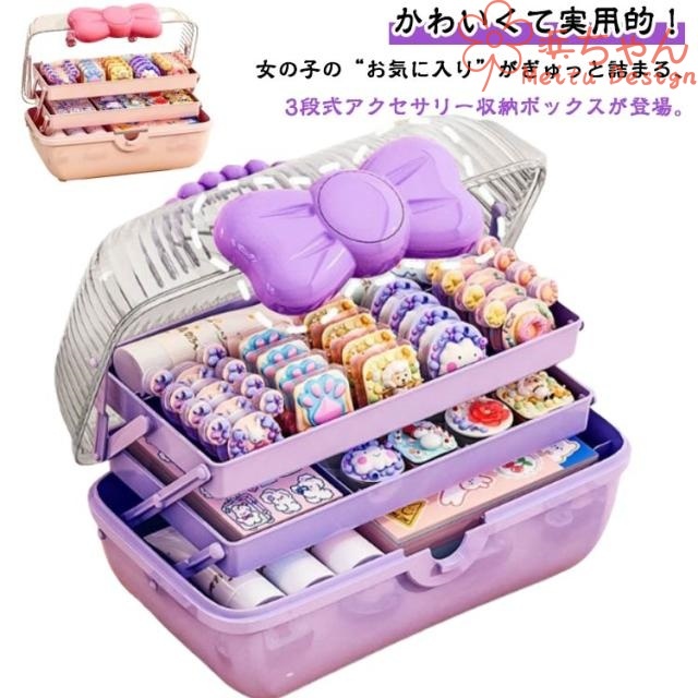 ■ジュエス キッズ 可愛い リボン ジュエリーケース 小物入れ 大容量 3段 指輪ケース 小物入れ 髪飾り ヘアピン ヘアゴム たっぷり収納 ア