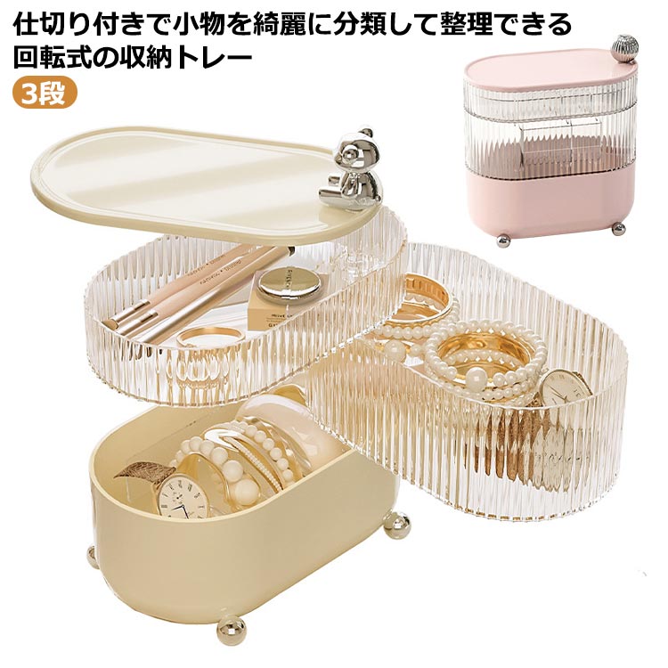 ■アクセサリー収納 3段 ピアス ジュエリーケース ジュエス 卓上 アクセサリー入れ アクセサリーケース アクセサリートレー 回転式 指輪 腕