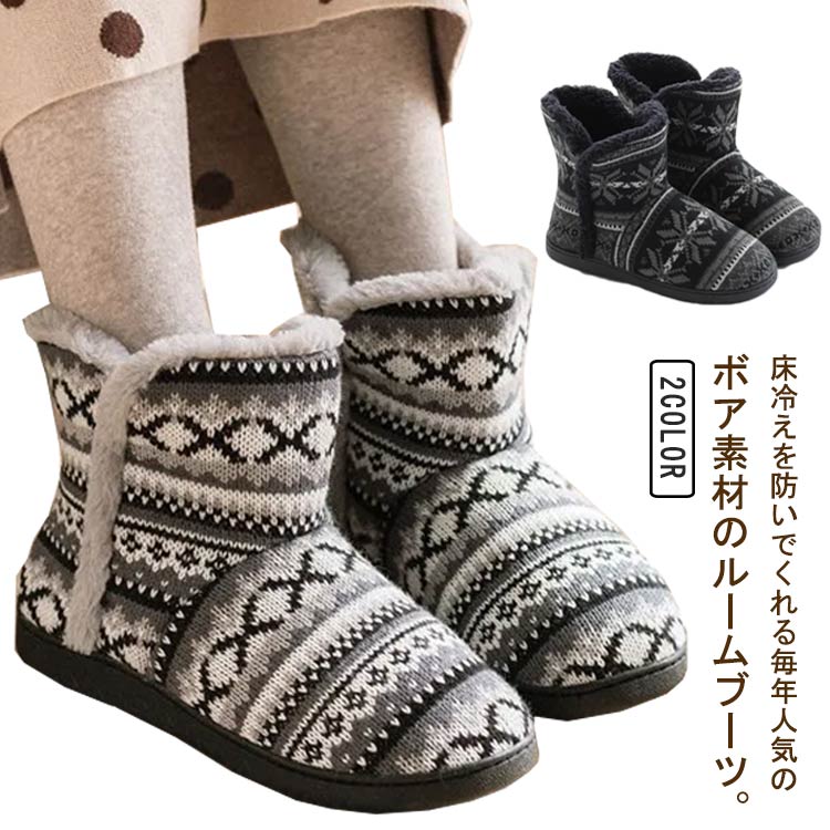 ■ルームシューズ 冬 ルームブーツ 厚底 レディース メンズ スリッパ ブーツ型 かかと付き もこもこ ふわふわ ボア あったか マイクロファ