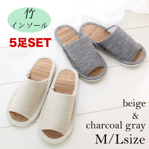 ■スリッパ 夏用 5足セット ニュー竹スリッパ・無地 外縫いタイプ (Mサイズ Lサイズ) EVA底