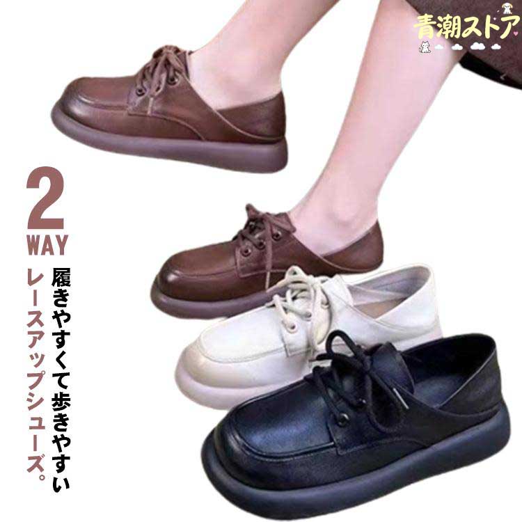 ■オックスフォード レディース レースアップ ローファー 外反母趾 靴 幅広 フラットシューズ 革靴 2WAY スリッパ 紐靴 カジュアルシューズ