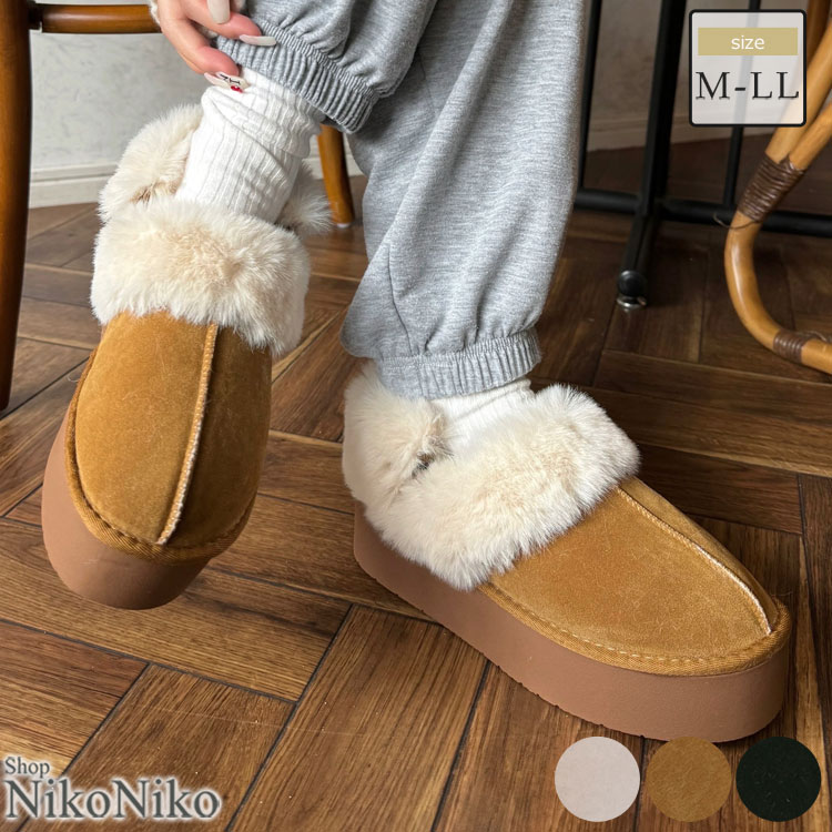 ■全品送料無料一部除く フェイクムートン ファーストラップ付 厚底スリッポン【即納】韓国カジュアル シューズ 靴 スリッパ サンダル ブー