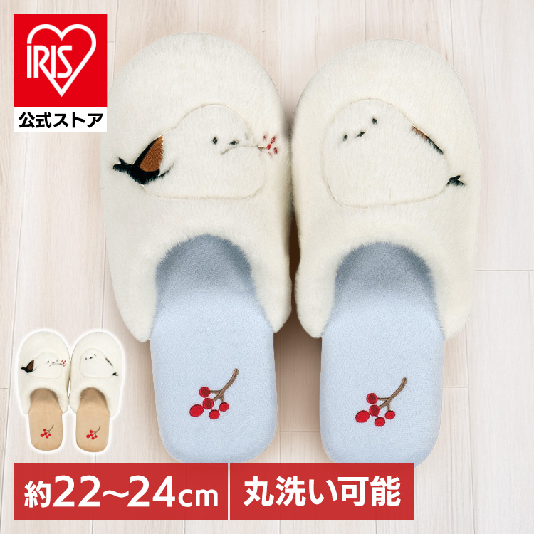 ■スリッパ 22-24cm ナカヨシシマエナガ センコー スリッパ シマエナガ ブルー かわいい 22cm 23cm 24cm 洗える ふわふわ フリーサイズ