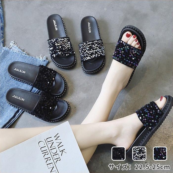 サンダル レディース 歩きやすい スリッパ キラキラ スパンコール シューズ 夏